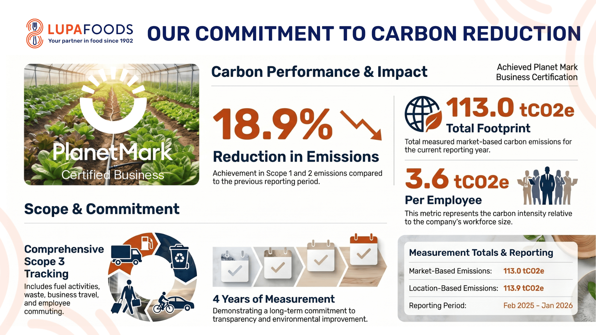 We are proud to share that Lupa Foods has been Planet Mark Certified for the fourth year running, marking another important milestone in our sustainability journey.